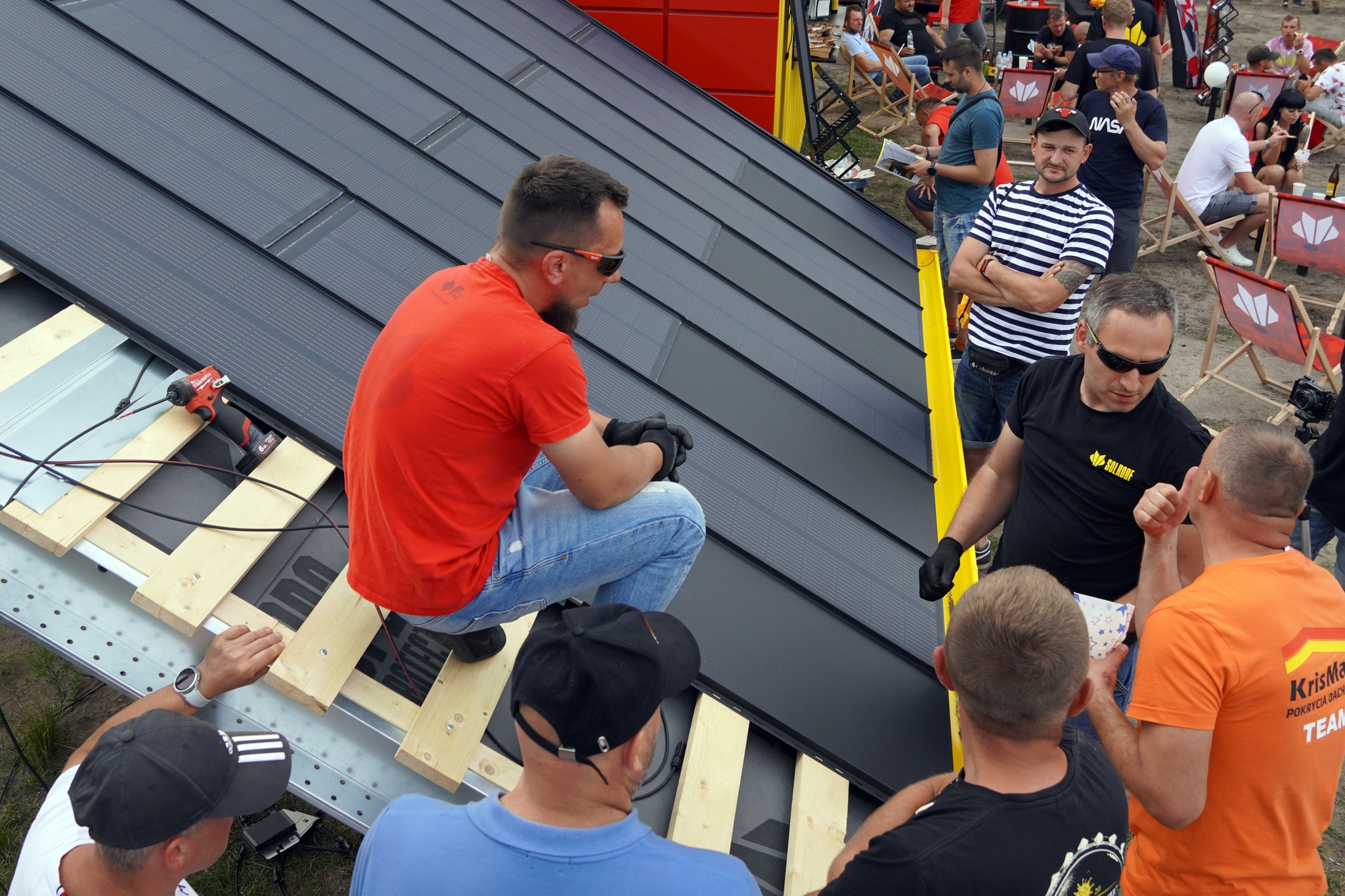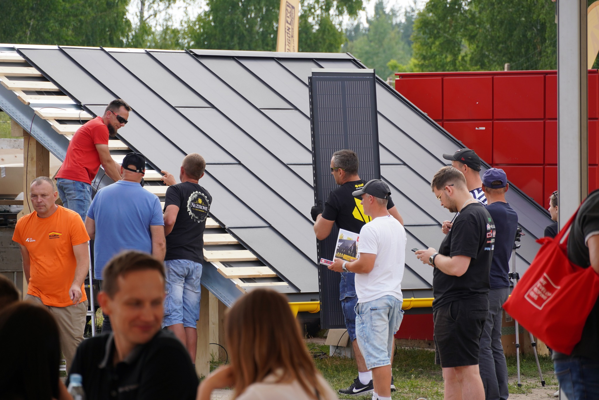 Przygotowaliśmy ekspozycję zintegrowanego dachu fotowoltaicznego, giftpacki z sygnetem wilka i katalogi pełne informacji. Nasz doradca techniczny Dawid Kocot przeprowadził pokaz montażu dachu SOLROOF.