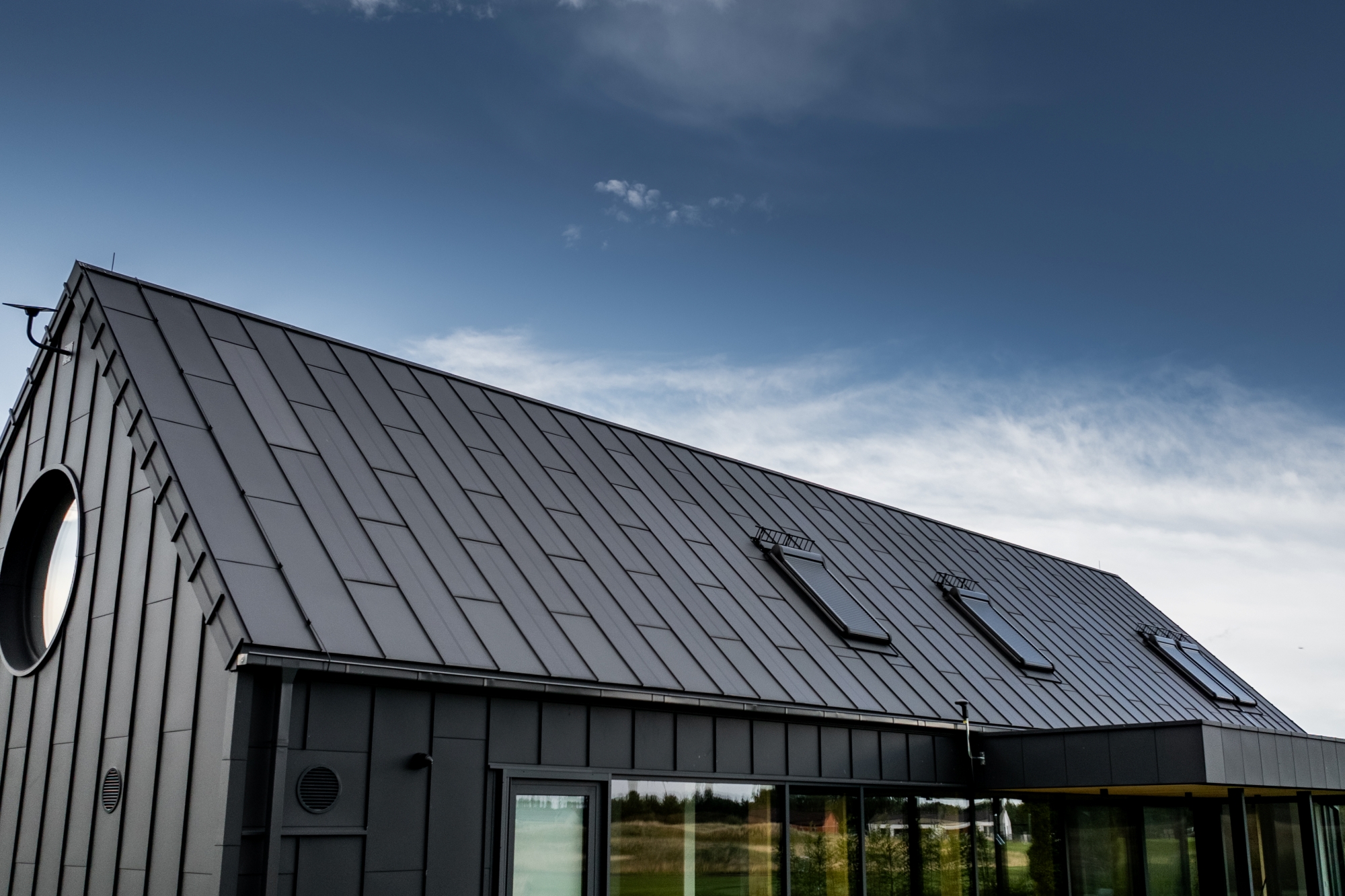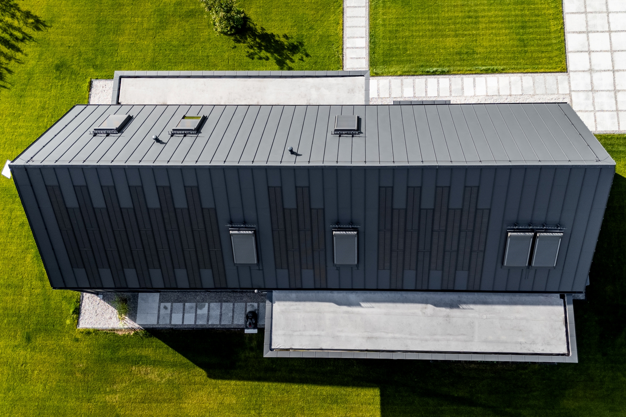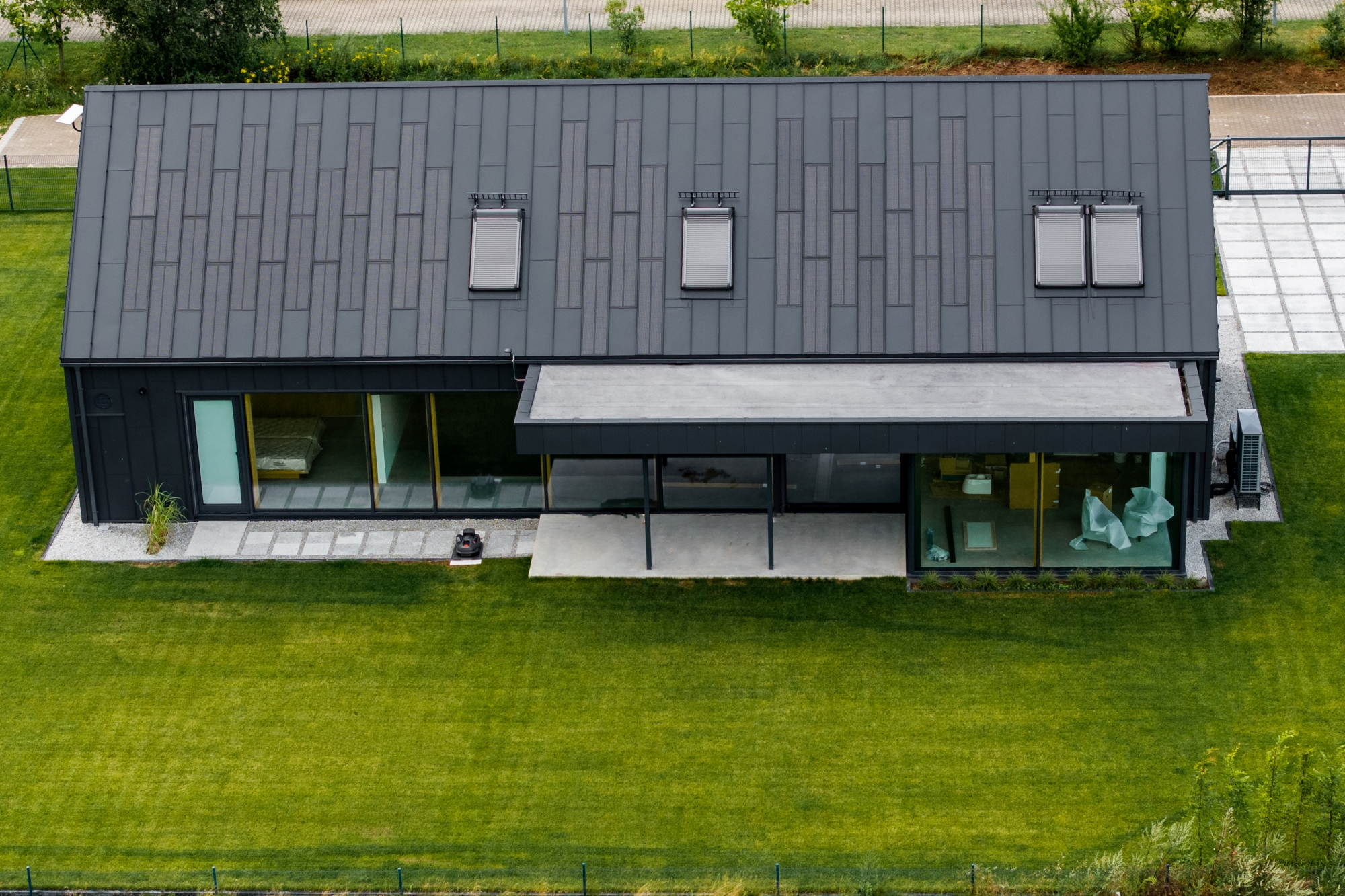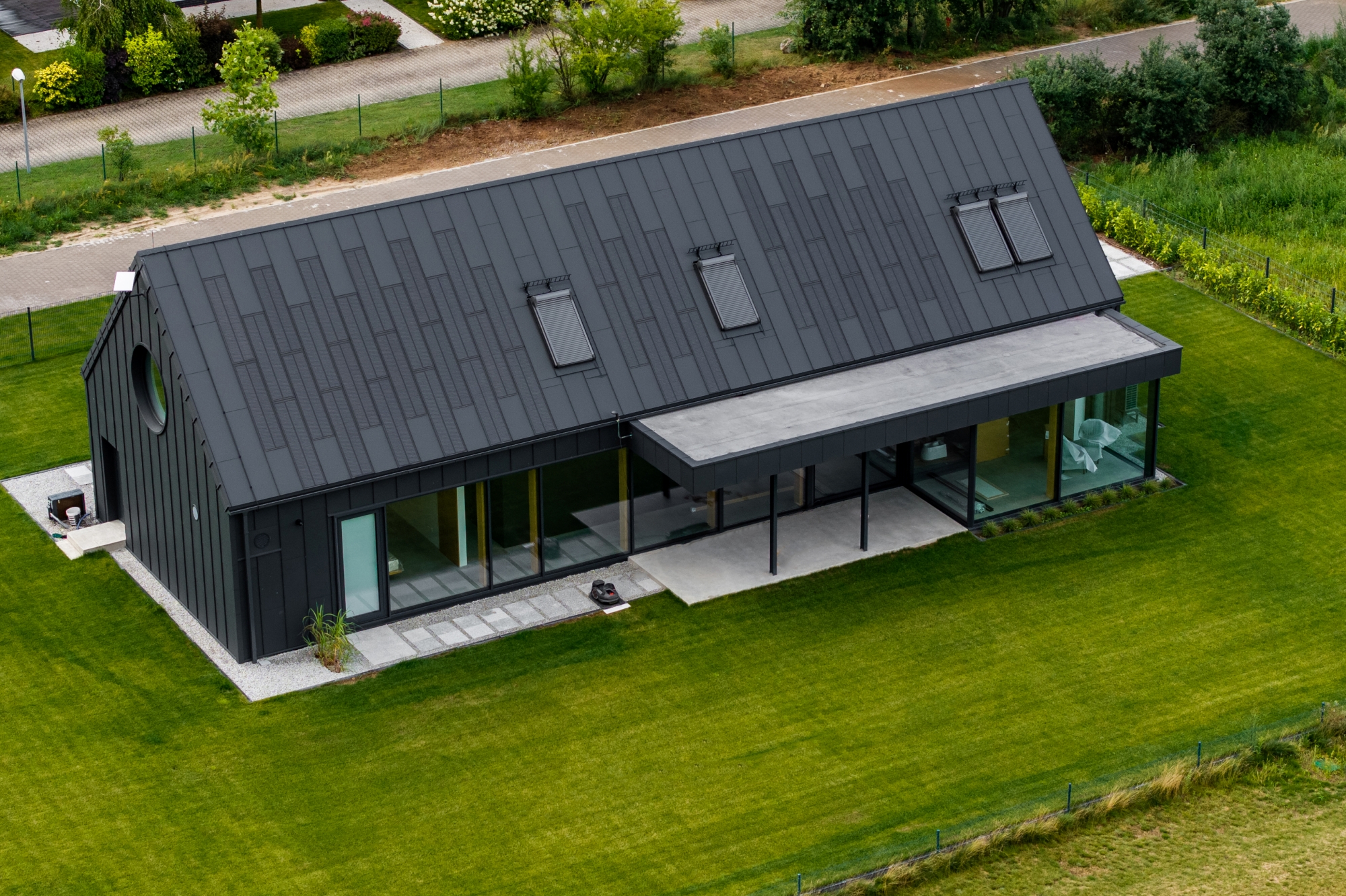 Pe acoperiș se află atât panouri fotovoltaice FIT VOLT, cât și panouri de oțel FIT, care au un rol complementar acolo unde nu se pot instala panouri fotovoltaice. Astfel, întreaga suprafață este uniformă și coerentă din punct de vedere vizual. Chiar și în zonele unde există ferestre de mansardă sau risc de umbrire, utilizarea panourilor FIT a permis menținerea unui ritm și a unei estetici perfecte. Acesta este avantajul modularității SOLROOF – flexibilitate totală și posibilitatea de adaptare la diferite tipuri de proiecte.