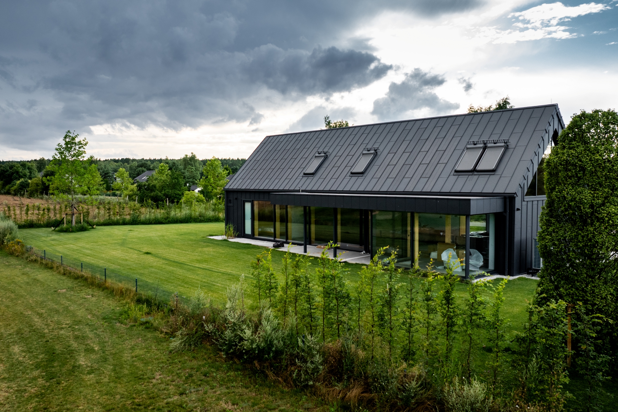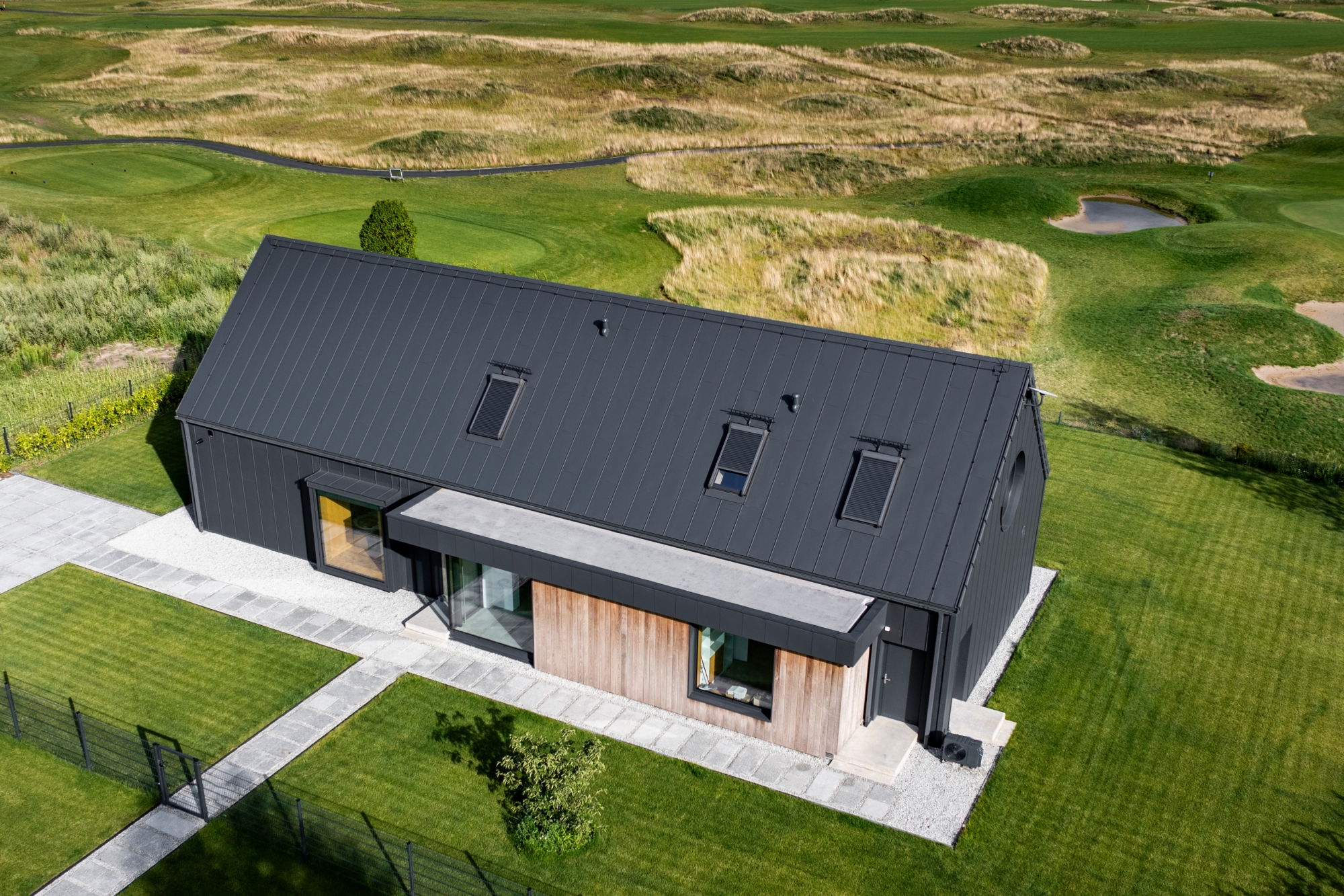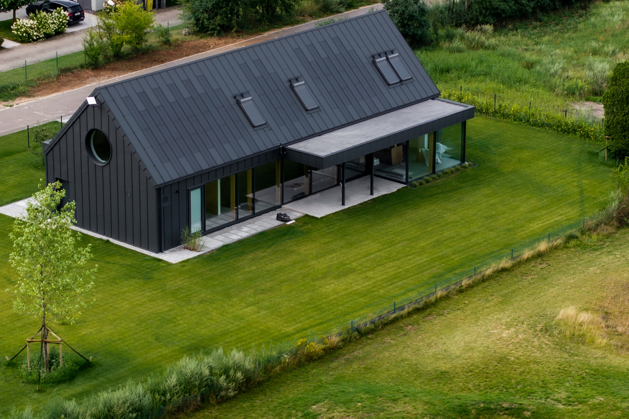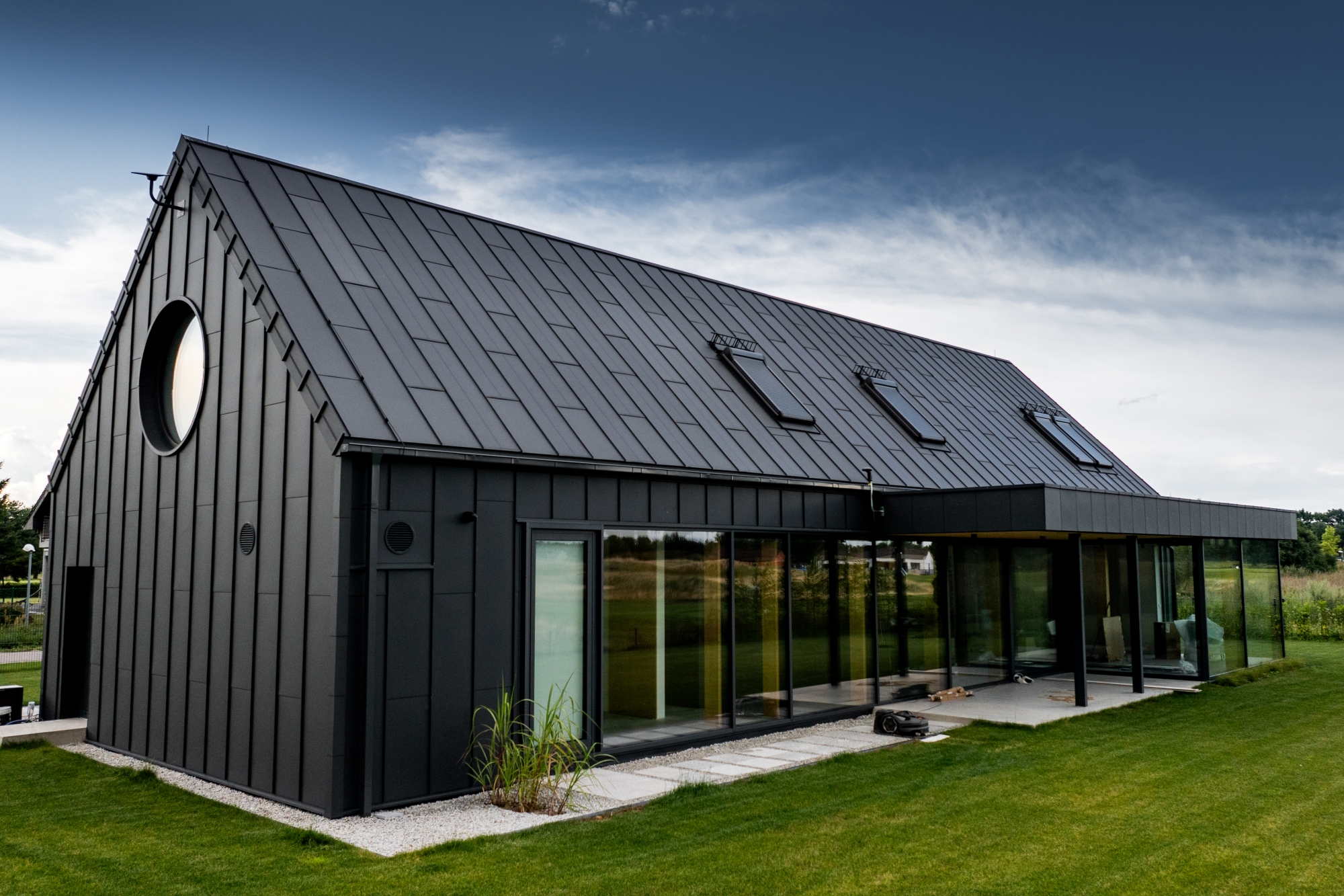 Pe acoperiș se află atât panouri fotovoltaice FIT VOLT, cât și panouri de oțel FIT, care au un rol complementar acolo unde nu se pot instala panouri fotovoltaice. Astfel, întreaga suprafață este uniformă și coerentă din punct de vedere vizual. Chiar și în zonele unde există ferestre de mansardă sau risc de umbrire, utilizarea panourilor FIT a permis menținerea unui ritm și a unei estetici perfecte. Acesta este avantajul modularității SOLROOF – flexibilitate totală și posibilitatea de adaptare la diferite tipuri de proiecte.