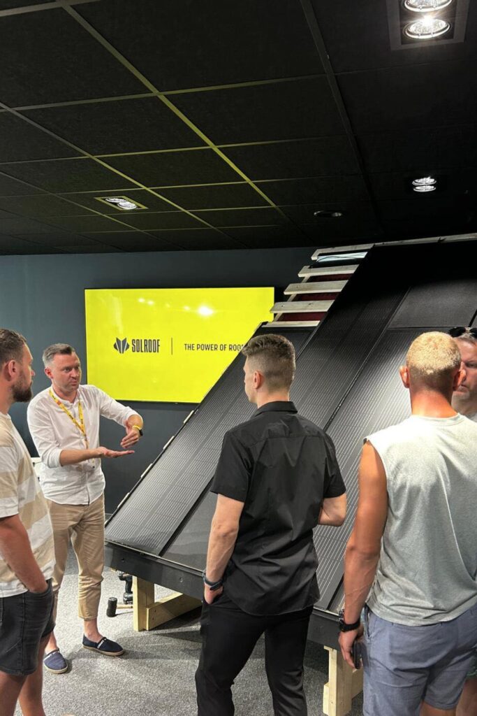 Warsztaty SOLROOF dedykowane architektom i dekarzom odbyły się 27 czerwca w Luna Hotel. Oprócz spotkań z przedstawicielami SOLROOF uczestnicy mogli zobaczyć pokaz montażowy stalowego dachu fotowoltaicznego 2W1 oraz otrzymać techniczne know-how.